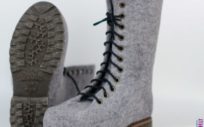 Ботинки сваляны из кардочеса (носок-пятка утеплены дополнительно), на шнурках -фурнитура итальянская, подошва ТЭП приклеена и прошита