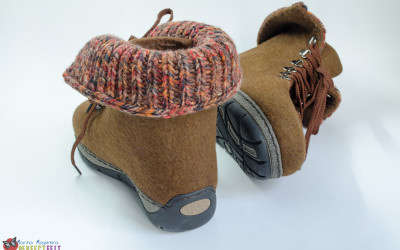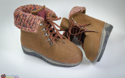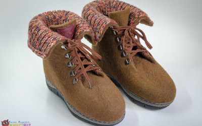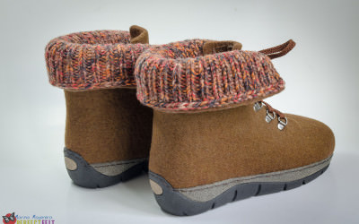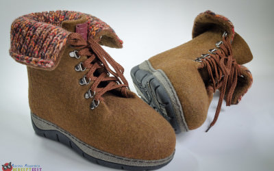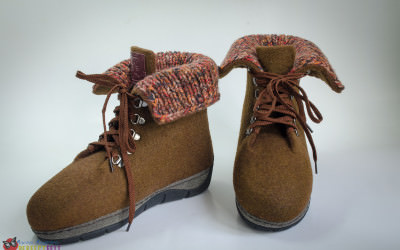 Женские ботинки из войлока «Монблан» — сваляны из кардочеса, отделаны пряжей, пятка и носок утеплены дополнительно, на шнурках, подошва приклеена и прошита — симпатичные, удобные и надежные!!!