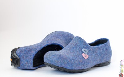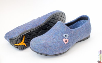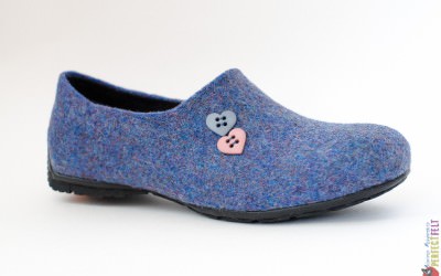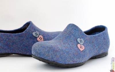 Женские слипоны из войлока  -тонкий пластичный войлок отлично «сидит» на ноге, небольшой каблучок и два сердечка вместо монограммы…