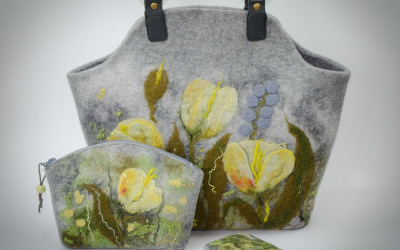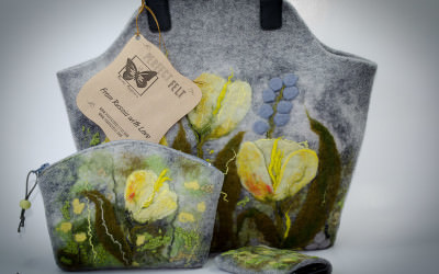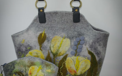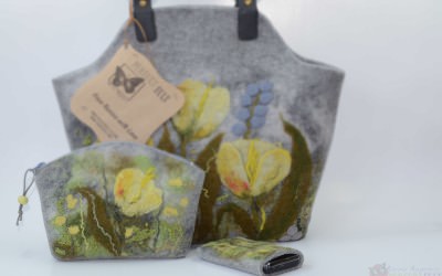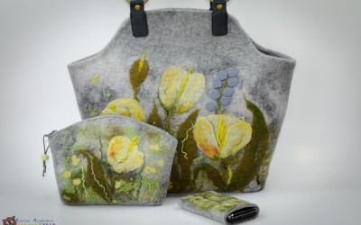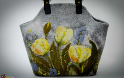Сумка из войлока, выполненная в технике шерстяная акварель.