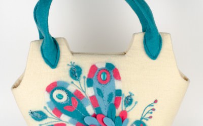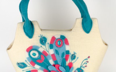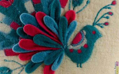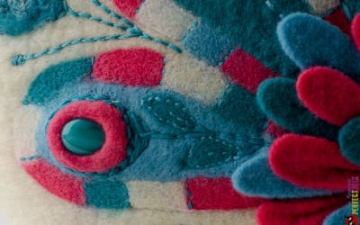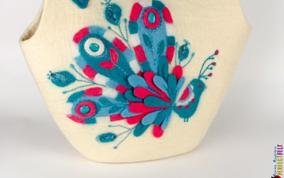 Сумка цельноваляная: для декора использованы элементы нуно-фелтинга, шерстяной акварели и вышивки; в перья хвоста вваляны искусственные кабошоны.